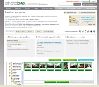 L'inscription à PhotoBox est très rapide. Pour créer un compte et profiter des services de l'application web PhotoBox, il suffit de renseigner votre adresse email. Première étape: le transfert de vos albums en ligne. Pour ce faire, PhotoBox met les bouchées doubles. Les utilisateurs de Flickr et de Picasa peuvent se réjouir: ces deux services de stockage en ligne permettent un transfert simplifié des albums vers PhotoBox. Pour les autres, pas de panique: l'application web met à disposition de ses utilisateurs un système très simple de serveur FTP.